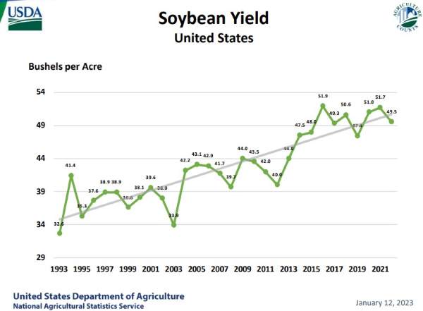 As usual, the USDA Crop Production reports can bring some surprises. The January data dump by the USDA brought two changes that the market was not expecting. The first was a drop in harvested corn acres, removing 1.6 million acres for the November totals. The second was a cut in soybean yield, lowering that number by 0.6 a bushel to 49.5 bushels/acre. Both moves brought overall production lower on the 2022 crops, dropping corn production by 200 million bushels, and soybeans by 69 million bushels. This reduced production lowered ending stock projections for both grains, while market analysts were expecting end stock totals to rise. For corn, even with a 185 million bushel drop in corn demand, corn ending stocks were lower by 15 million bushels to 1.242 billion bushels, well below market expectations. In soybeans, the lower production absorbed a 55 million bushel demand cut to drop ending stocks by 10 million bushels to 210 million bushels, again well below expectations. The lower ending stock totals are what helped provide the buying strength in the market on Thursday as the U.S. supply-side got a little tighter.