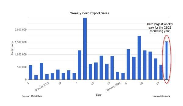 The corn export window is not wide open for U.S. corn. Corn export sales last week totaled 1.412 MMT, which was the 3rd largest weekly sale total for the 2022-23 marketing year, and export inspections have been trending near or above the top end of analyst expectations the past couple weeks. This morning, the USDA announced a sale of 612,000 mt of corn to China for the marketing year. This was the first reported sale to China since last August and the largest single purchase since Apr by the Chinese of U.S. corn. Even with the recent activity, the U.S. corn export program is still lagging behind the pace of recent years, and Chinese purchase of U.S. corn is minimal. The corn market can’t help but be encouraged that the recent break in prices has helped trigger some much-needed demand.