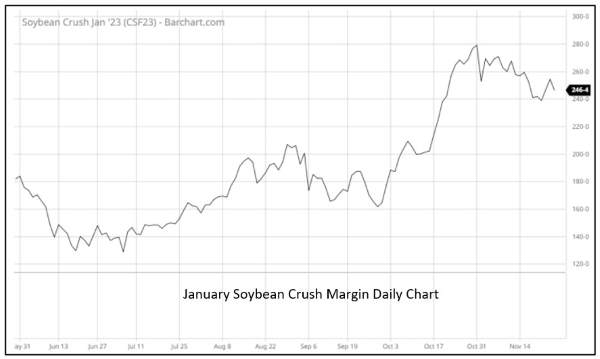 Wheat was under pressure today as funds are adding to short positions. But searching for a reason why is a bit of a head scratcher. A poor inspections number, reported at 7.3 mb, wasn’t helpful but on its own shouldn’t lead to a significant downturn. (Total 22/23 inspections now at 385 mb). Perhaps the rains this weekend in some HRW areas added to the pressure. As far as new headlines, there is the threat of a railway strike, which could occur as soon as December 9. If it does happen, grain will likely back up in the country and negatively impact basis. Again, one would not expect this to have much impact as it has not yet (and may not) occurred. There were also increasing protests in China over the weekend due to their Covid restrictions. While not necessarily a direct impact to wheat, this could have a greater impact on the markets overall. On the topic of China, they are also said to be selling wheat from their state reserves. Overall, the fundamental picture still looks mostly friendly for wheat. The Buenos Aires Exchange in Argentina estimates their wheat crop at 12.4 mmt (vs earlier projections of 20 mmt and a crop last year of 22.3 mmt). In addition to Argentina’s poor growing conditions, Australia has had issues of their own in terms of quality. The biggest impact right now continues to stem from the Black Sea where the export corridor was recently extended by several months. As a reminder first notice date for Dec grain futures is this Wednesday, November 30.