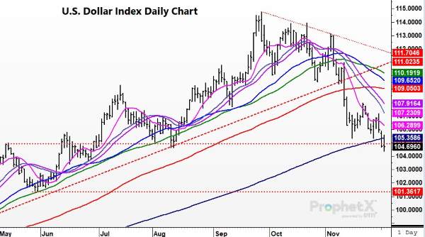 The U.S. dollar broke support levels and maintained its trend lower. The U.S. Dollar Index dropped to its lowest levels since June as the market trended lower on the week. The weakness in the dollar was fueled by speculation the fed will reduce the aggressiveness of interest rate hikes and soften the monetary stance in the future. Recent economic data has been supporting and comments by Fed Chairman Powell have helped build this belief. Since late September, the dollar index has dropped nearly 10 full points. This week, the dollar traded below the 200-day moving average for the first time since June 2021. The weaker tone in the dollar should support commodity prices as U.S. goods should be more competitive on the global markets. Currencies can trend for a long stretch of time, and the U.S. Dollar index is looking to work to test lower levels.