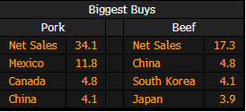 - Mexico bought 11.8k tons of the 34.1k tons of pork sold in the week