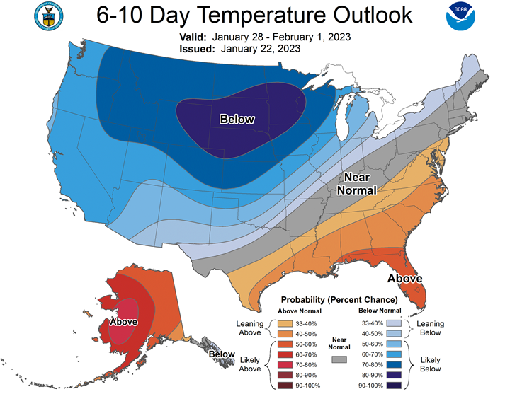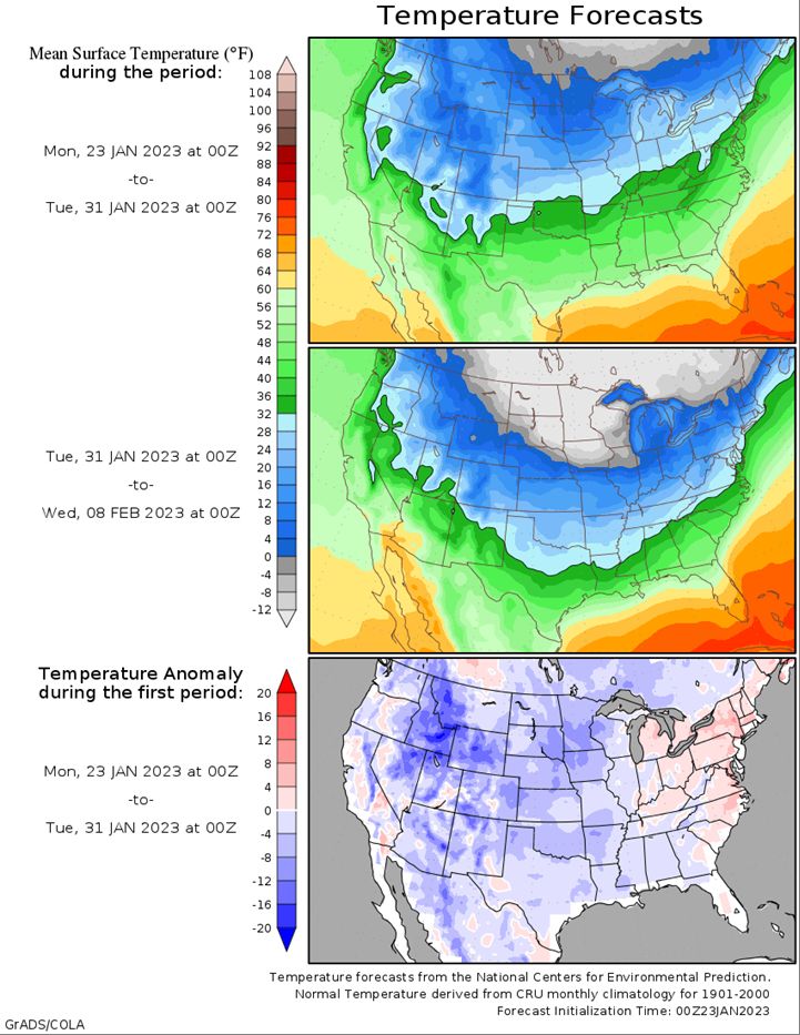 Northern Plains Forecast: A cold front will push through the region late this week that will bring in much colder air for the end of January and the beginning of February, leading to increased stress for livestock.
