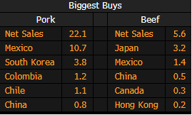 • Mexico bought 10.7k tons of the 22.1k tons of pork sold in the week