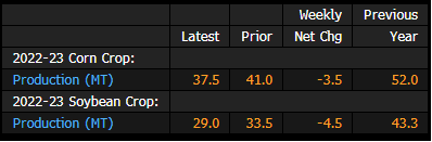 • 2022-23 soybean production cut to 29m tons from 33.5m tons