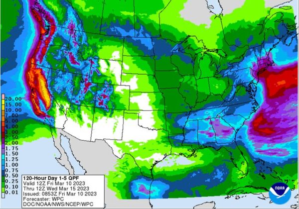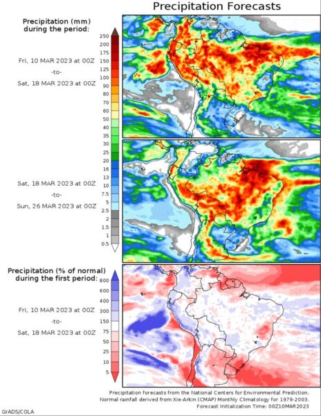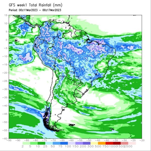 Brazil Grains & Oilseeds Forecast: Scattered showers continue for much of Brazil’s growing regions for the next week outside of Minas Gerais and Rio Grande do Sul, where showers will be more limited. Despite recent rains, many areas have made significant progress with regard to soybean harvest and corn planting. However, some areas are behind, somewhat significantly, and will expose more of the corn crop to the dry season which is forecast start up in April and frosts that may occur in June. Corn already in the ground will benefit from good soil moisture.