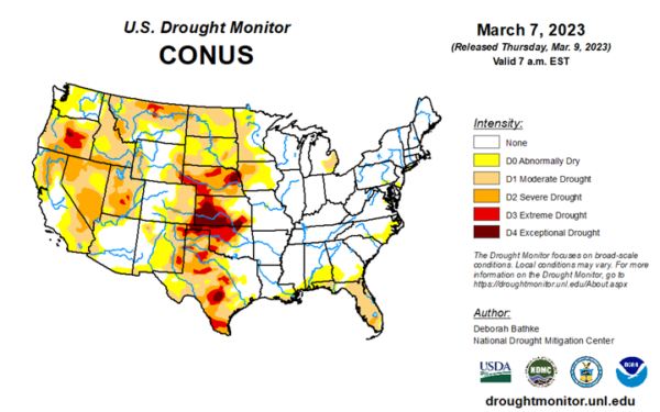 The NOAA’s Climate Prediction Center says that the long-running La Niña climate system has finally come to an end after three winters, with the climate now neutral and possibly forming into an El Niño system late in the summer or in the fall. The change to the weather pattern comes ahead of the next planting season for US farmers — with some crop-growing states like Oklahoma, Kansas, Nebraska and Texas still suffering with areas of exceptional drought, according to the latest data from the US Drought Monitor also released this morning.