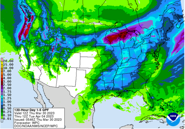 Midwest Forecast: Another strong storm will move through the Midwest Thursday into Saturday with widespread precipitation, severe storms, strong winds, and a band of snow across the north as we turn the calendar to April. The wetter conditions across a lot of the region are causing a slow start to fieldwork.