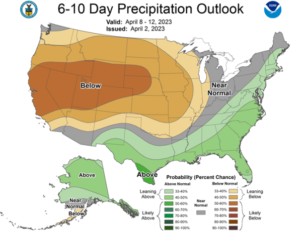 Central/Southern Plains Forecast: Strong to severe storms moved across northern Texas and Oklahoma on Sunday, but missed the drought areas with any of the significant precipitation. Another strong storm system will be moving out of the West on Monday night and Tuesday. The system will track farther north than last week’s system, with most of the impacts to the north with the blizzard. The far east could get in on some severe storms, however. But the drought areas again will be bypassed, with strong winds being the concern yet again for both damage and blowing dust. Wheat continues to have a rough go with weather conditions.