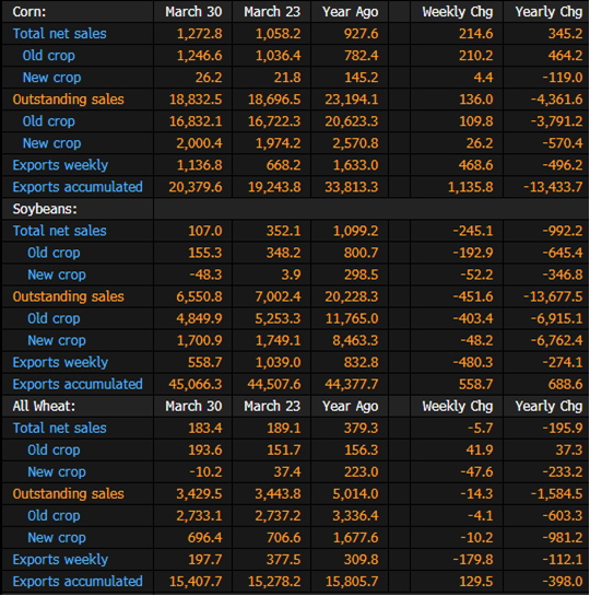 US Agriculture Export Sales for Week Ending March 30