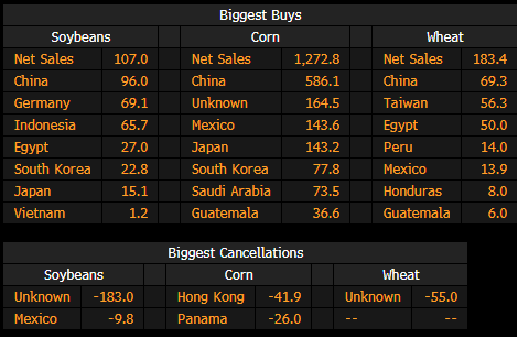 US Export Sales of Soybeans, Corn and Wheat by Country