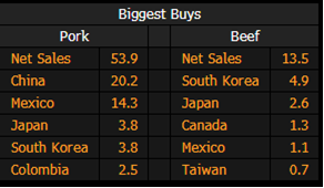 - China bought 20.2k tons of the 53.9k tons of pork sold in the week