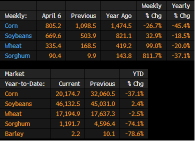 US Corn, Soybean, Wheat Inspections by Country: April 6