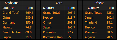 - Corn: 805k tons vs 1,098k the previous wk, 1,475k a yr ago