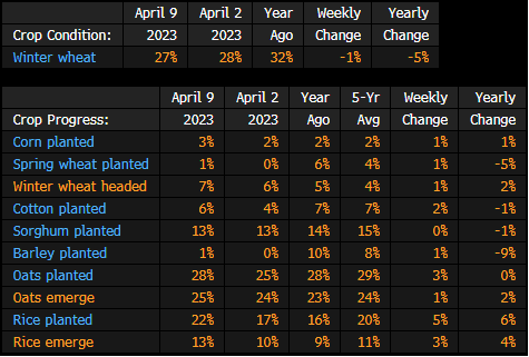 USDA Winter Wheat Conditions for Week of April 9