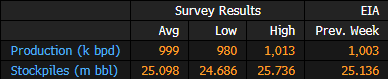 - Stockpile avg est. 25.098m bbl vs 25.136m a week ago
