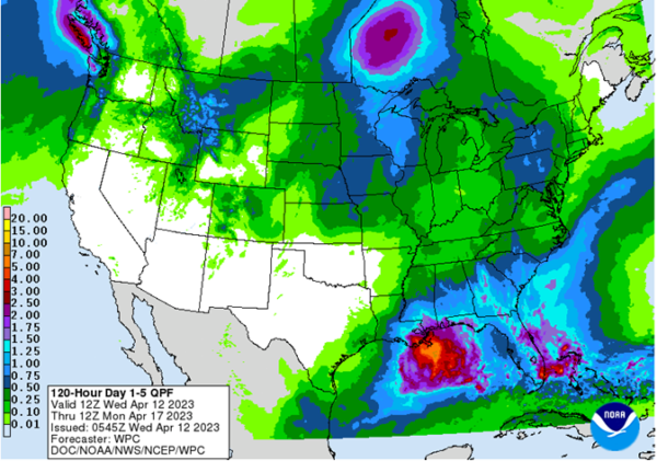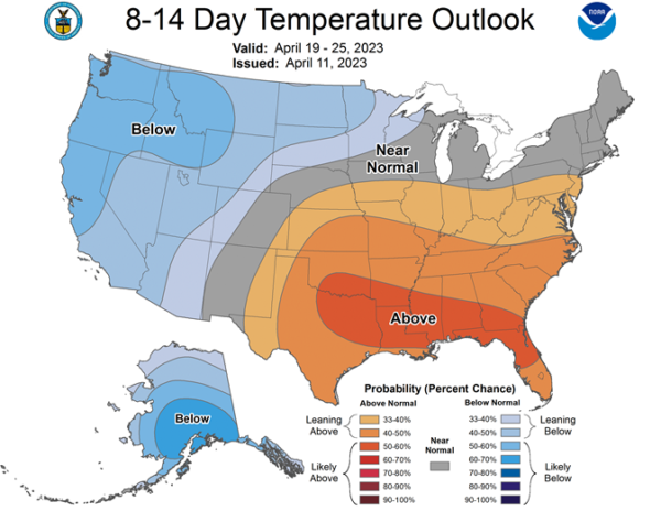 US Delta Forecast: Scattered showers south Wednesday-Thursday. Mostly dry Friday. Scattered showers Saturday. Temperatures near normal through Thursday, above normal Friday-Saturday. Outlook: Mostly dry Sunday-Thursday. Temperatures near to below normal Sunday-Monday, near to above normal Tuesday-Thursday.