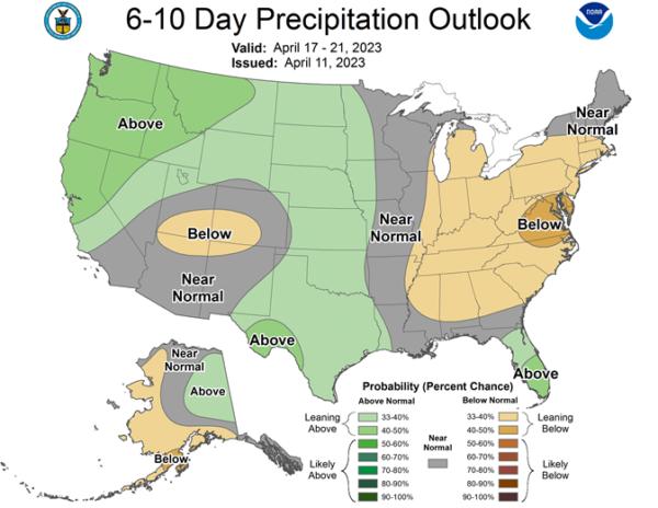 - Warm, dry weather in the Corn Belt kept farmers busy with field preparations and spring plantings.