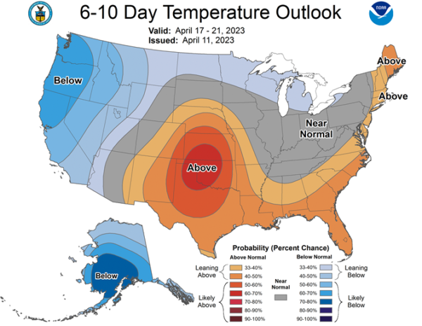 Central/Southern Plains Forecast: Mostly dry Wednesday. Isolated showers west Thursday. Isolated to scattered showers Friday-Saturday. Temperatures above to well above normal through Thursday, near to below normal northwest and well above normal southeast Friday-Saturday. Outlook: Mostly dry Sunday-Tuesday. Isolated showers Wednesday-Thursday. Temperatures near to below normal Sunday, near to above normal Monday-Thursday.