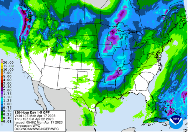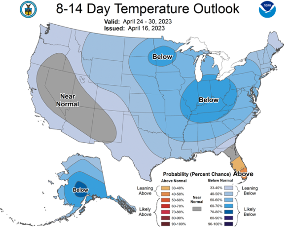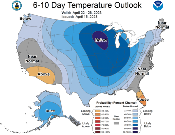 - Forecasts also called for a return to warmer temperatures next week, which should allow growers to pick up planting tasks again.