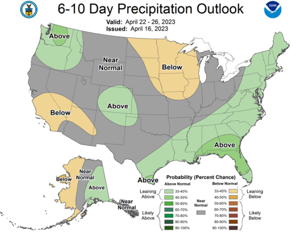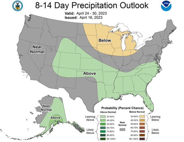 Delta Forecast: A system brought heavier precipitation through on Saturday. After a couple dry days, another system is likely to produce widespread precipitation in a few rounds. Many areas of the region are wet, limiting spring planting. Some areas that have been able to plant will find good conditions for germination and early growth, though temperatures will be on the cooler end of normal.