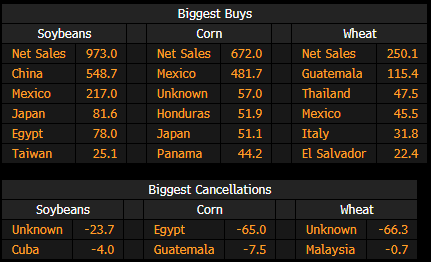 - China bought 549k tons of the 973k tons of soybeans sold in the week