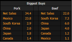 - Mexico bought 23.8k tons of the 34.4k tons of pork sold in the week