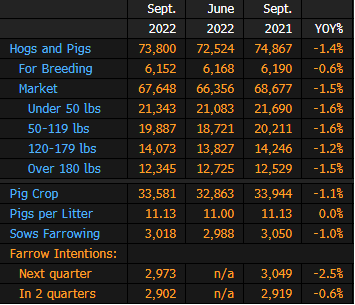The hog herd totaled 73.8m head on Sept. 1, according to the USDA report released Thursday on its website.