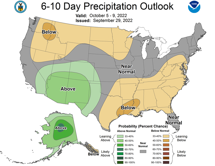 Preliminary changes in futures Open Interest as of September 29 were: SRW Wheat down 2,606 contracts, HRW Wheat down 2,231, Corn down 2,950, Soybeans down 32,286, Soymeal down 7,289, Soyoil down 232.