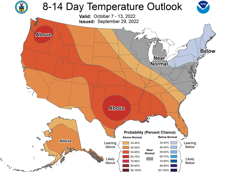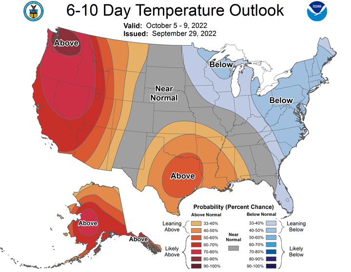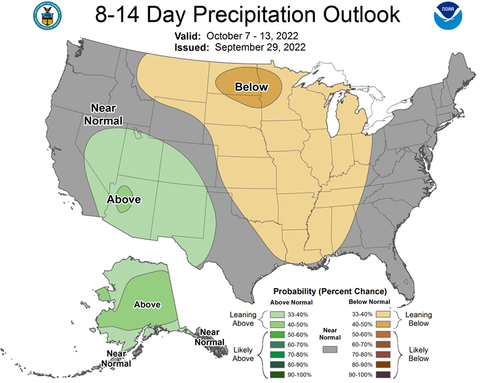 Northern Plains Forecast: Isolated to scattered showers Friday-Monday. Temperatures above to well above normal through Monday. Outlook: Isolated showers Tuesday. Mostly dry Wednesday-Saturday. Temperatures above normal Tuesday-Wednesday, near to above normal Thursday-Saturday.
