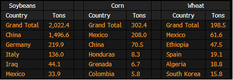 - Soybeans for China-bound shipments made up 1.5m tons of the 2.02m total inspected