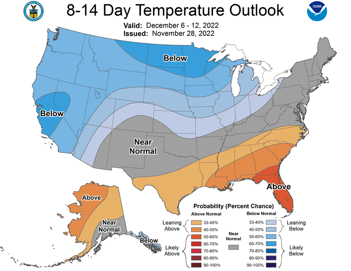Central/Southern Plains Forecast: Snow north Tuesday. Mostly dry Wednesday-Friday. Temperatures below normal northwest and above normal southeast Tuesday, below normal Wednesday, near to below normal Thursday, above normal Friday. Outlook: Isolated to scattered showers Saturday-Monday. Mostly dry Tuesday-Wednesday. Temperatures above normal Saturday-Monday, below normal north and above normal south Tuesday, near to below normal Wednesday.