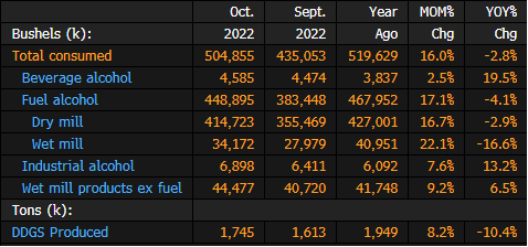 The following table is a summary of US corn consumption for fuel and other products, according to the USDA.