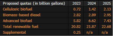 The proposed EPA volumes for crop-based fuels came in below market expectations, StoneX risk management consultant Matt Campbell said. “The market is not taking the news well,” particularly for soybean oil, since “requirements were well short of trade estimates,” Campbell added.