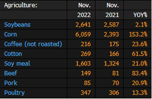 - Corn production in 2022-23 season seen totaling 130.3m tons, up from 123.5m tons in the previous year