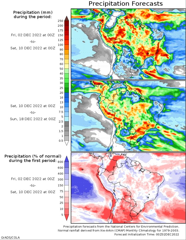 Brazil Grains & Oilseeds Forecast: Scattered showers will continue in central and northern Brazil as is typical for this time of year. Southern Brazil is seeing isolated showers fill back as well. A front will come into southern Brazil on Friday and stall, allowing for more precipitation to accumulate going into next week, which would reverse the recent trend of below-normal rainfall at a crucial time for full-season corn that is nearing pollination. It will be more brief for the state of Rio Grande do Sul, however.
