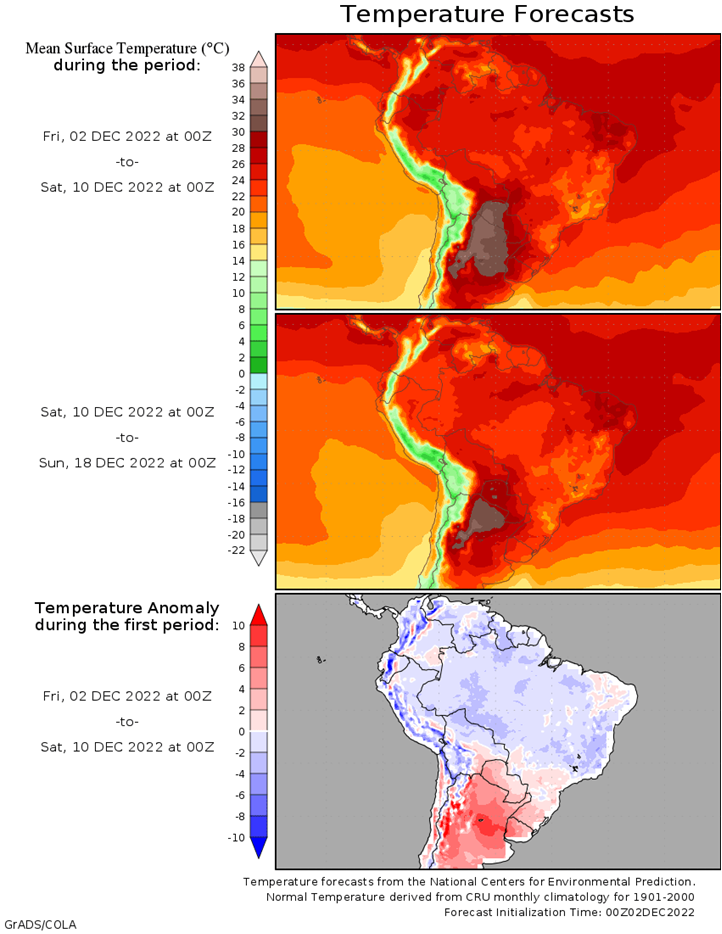 Argentina Grains & Oilseeds Forecast: Isolated showers will be pushed out of Argentina by a cold front on Thursday. Drier conditions follow going into next week along with a return of heat. Dryness and drought continue to be concerns for all crops until showers become more consistent.