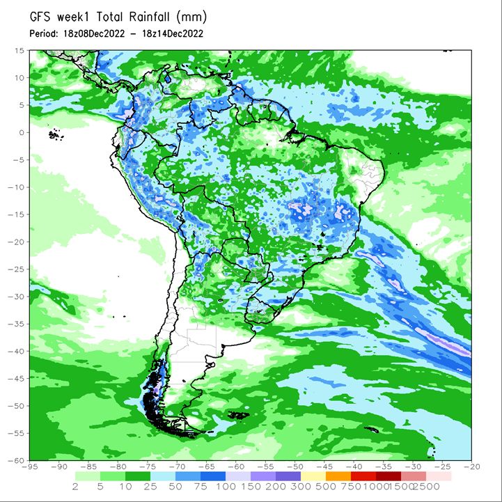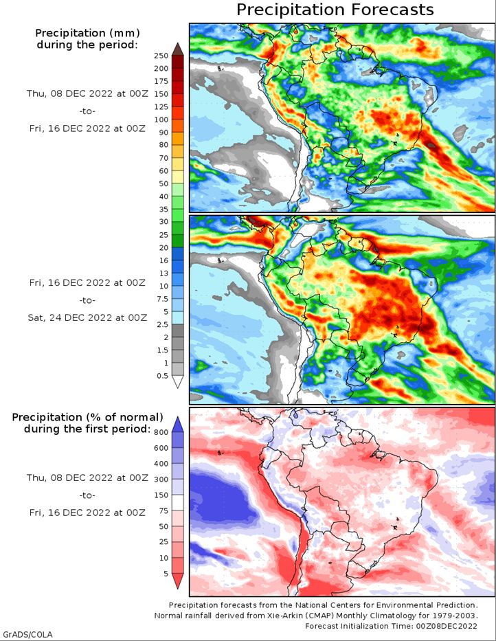 Brazil Grains & Oilseeds Forecast: Rio Grande do Sul and Parana: Mostly dry Thursday. Isolated to scattered showers Friday-Sunday. Temperatures above normal through Sunday. Mato Grosso, MGDS and southern Goias: Scattered showers through Sunday. Temperatures near normal through Sunday.