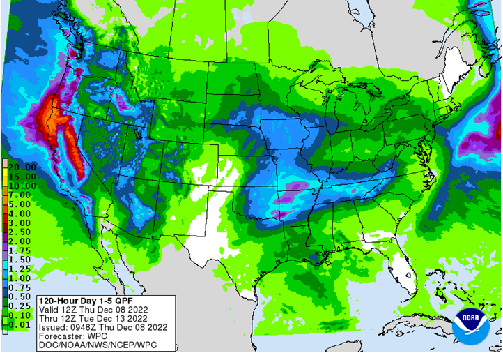 Central/Southern Plains Forecast: Scattered showers Thursday. Mostly dry Friday. Scattered showers Saturday-Sunday. Temperatures near to below normal north and above normal south through Saturday. Temperatures near to above normal Sunday. Outlook: Isolated to scattered showers Monday-Wednesday. Mostly dry Thursday-Friday. Temperatures above normal Monday-Tuesday, near to above normal Wednesday, and near to below normal Thursday-Friday.