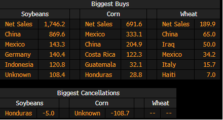US Export Sales of Soybeans, Corn and Wheat by Country
