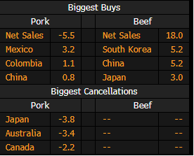 - Weekly pork sales resulted in a net cancellation of -5.5k tons, the lowest since April of 2021