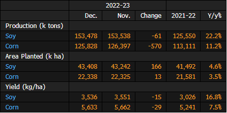 Brazil 2022-23 Soybean and Corn Crop Estimates: Conab