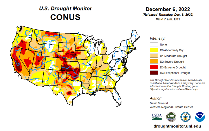 Central/Southern Plains Forecast: A system is moving through the Central and Southern Plains Thursday with scattered showers but missing large drought areas in the west. Southeastern areas will stay active with another disturbance bringing moderate rain over the weekend. A much larger storm system will move through early next week. Precipitation will increase across the east, but southwestern areas are unlikely to see much out of the system. Heavy snow will be possible across the northwest and may result in blizzard conditions. Overall, drought relief may come to southeastern areas but the southwest should see worsening conditions. Warmer temperatures ahead of the system will fall behind it.