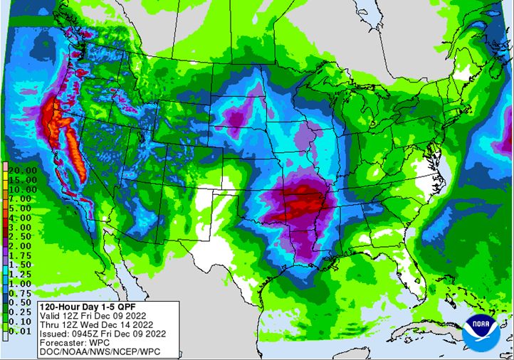 Argentina Grains & Oilseeds Forecast: Isolated showers remain possible in Argentina through the rest of this week and into the weekend, but very high temperatures will cause further stress and potential damage to developing corn and soybeans. Planting is also very delayed and conditions for the rest of this week will not promote much progress. A stronger front will move through with more organized showers Sunday and Monday, but mostly for northern areas. The front will bring lower temperatures into the country but will also stop chances for showers with a lot of dryness for next week. Overall, conditions continue to be poor for corn and soybeans until precipitation becomes more consistent.