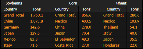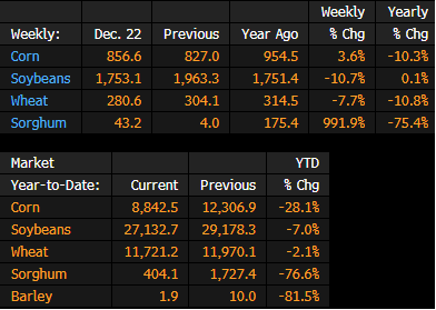 US Corn, Soybean, Wheat Inspections by Country: Dec. 22