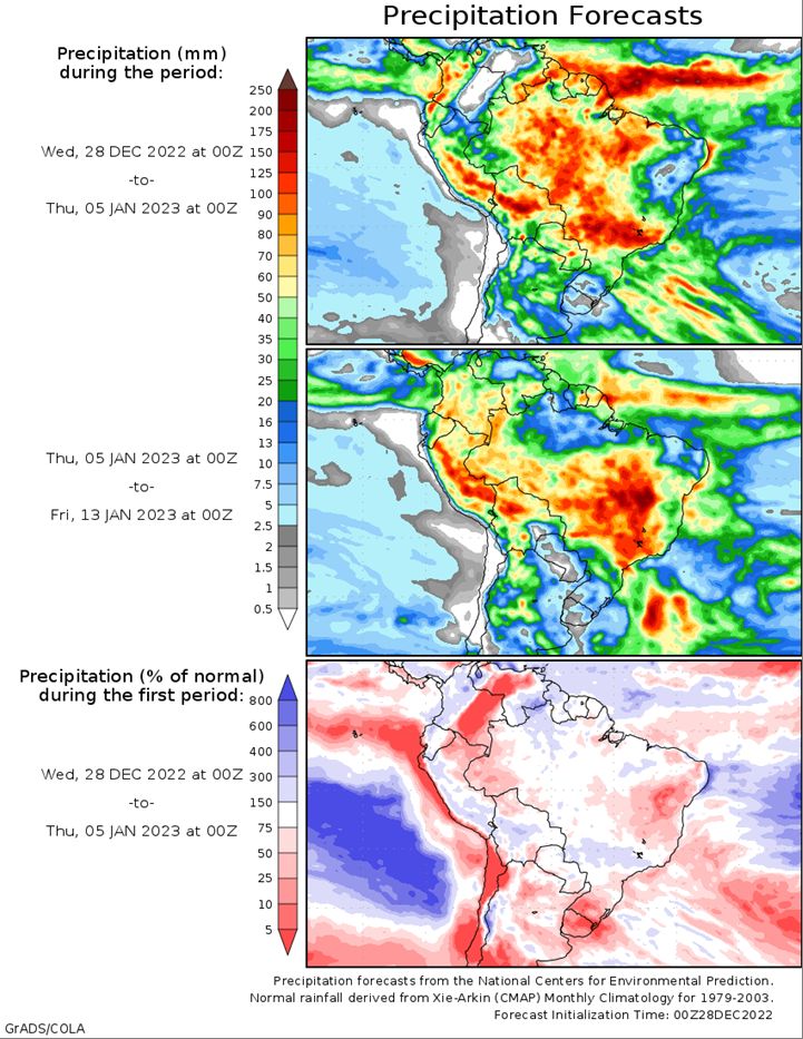 Brazil Grains & Oilseeds Forecast: Scattered showers will continue in central and northern Brazil for at least the next two weeks, as is typical for this time of year. Soybeans remain in mostly favorable condition, though dryness across the far south is a little concerning for both corn and soybeans that are in reproductive stages. A cold front will move into the south with a brief period of showers Tuesday into Wednesday, but the front will move north of Rio Grande do Sul and dry out behind it. Rio Grande do Sul and eventually Parana will dry out and some concern over crop conditions continues in these states.