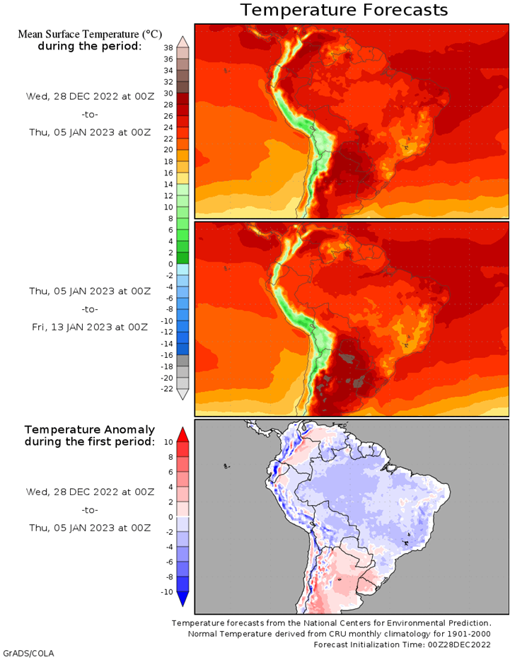 Argentina Grains & Oilseeds Forecast: A front brought widespread showers to Argentina on Friday, but it has gotten dry behind it yet again, with dry conditions continuing through most of the week. Another shot of showers will move through this weekend, but it will get dry behind that front as well. Showers are not coming at a consistent enough clip to reduce drought or turn around crop conditions for corn and soybeans that have been significantly harmed by heat and drought this season. Planting on both remains well behind the normal pace as well.