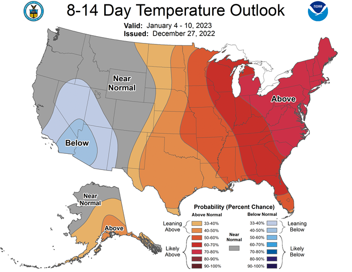 Central/Southern Plains Forecast: Temperatures are rising above normal in the Central and Southern Plains as arctic air is moving out of the region. Several storm systems and disturbances will move through over the next week, but precipitation is going to be limited and more likely for northern areas than anywhere else. This will likely be a mix of rain and snow. Precipitation is not forecast to be very heavy or help with the drought situation.