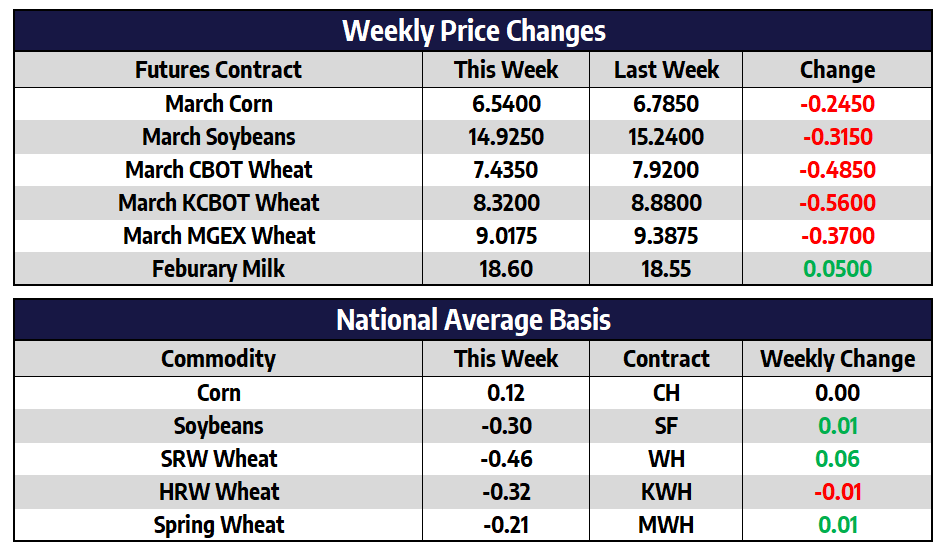 The nearby Class III contracts managed to close with small gains on the shortened week after heavy losses to kick off the new year. February took over as the second month contract and finished a penny higher on the week at $18.59, but that represents a 64 cent move off of Wednesday’s intra-day low. However, that is the lowest weekly close for the second month Class III contract since the week of 11/22/2021. Class IV futures kept their downtrend intact into January as the 2023 average has hit a 5-month low. Despite Thursday’s release of some solid November export numbers, the declining Global Dairy Trade momentum and weaker domestic demand has weighed on the spot markets and keeps the bear camp in control for now.