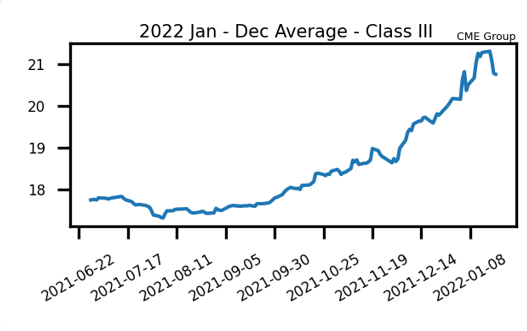 Nearby class III milk futures are going through a correction as the market takes out premium from the months closer to the spot cheese price. This week, February milk fell five days in a row by a total of $1.50/cwt. The fact that cheese wasn’t able to push over $2.00/lb and has since reversed back to $1.81/lb is keeping pressure on futures. The block/barrel average cheese price fell 13c total this week on steady selling pressure. The class III market is still receiving an overwhelming amount of support from multi-year high butter prices, multi-year high class IV prices, high feed costs, and tighter milk production, but a lower US cheese price will make it hard for the market to hold these levels. The front month January contract and the second month February contract are now more in line and are just 25c apart after Friday’s close. The class III trade had a pretty neutral session on Friday.