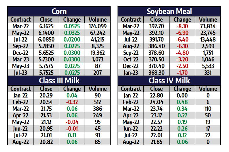 The corn market had a strong week of trade, with the March 2022 contract adding 20c total this week. The market was also able to push up into its highest price since early June 2021. On Friday, the market got news that 247,800 metric tons of US corn will be exported to unknown destinations during the 2021/22 marketing year. China’s corn prices have been strengthening as well, as its Dalian May corn contract hit its highest level since June (close to the equivalent of $11 per bushel). Commodity prices found support this week from talk that more and more hedge funds are adding to grains and soybean longs as a hedge against inflation. Weather in South America is still being watched closely.